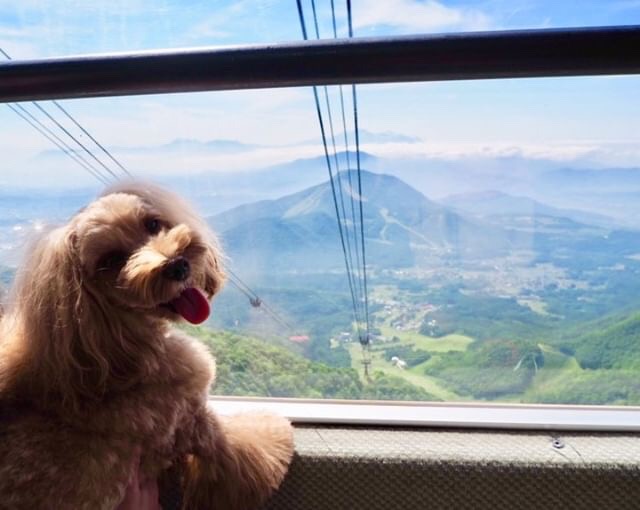 標高980mの山麓駅から標高1,770mの山頂駅まで、約8分間の空の旅をワンちゃんとお楽しみいただけます。ぐんぐん上がる標高と移り変わる景色に、ワンちゃんもなんだか楽しそう。