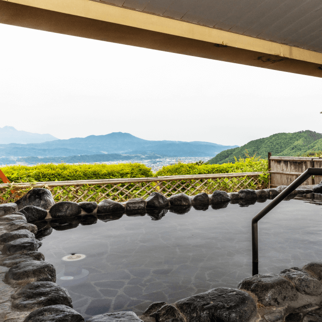 露天風呂からは長野市へと続く善光寺平、北信五岳を一望。ゆったりとした内湯や人気No,1のサウナ、水風呂もお楽しみください。