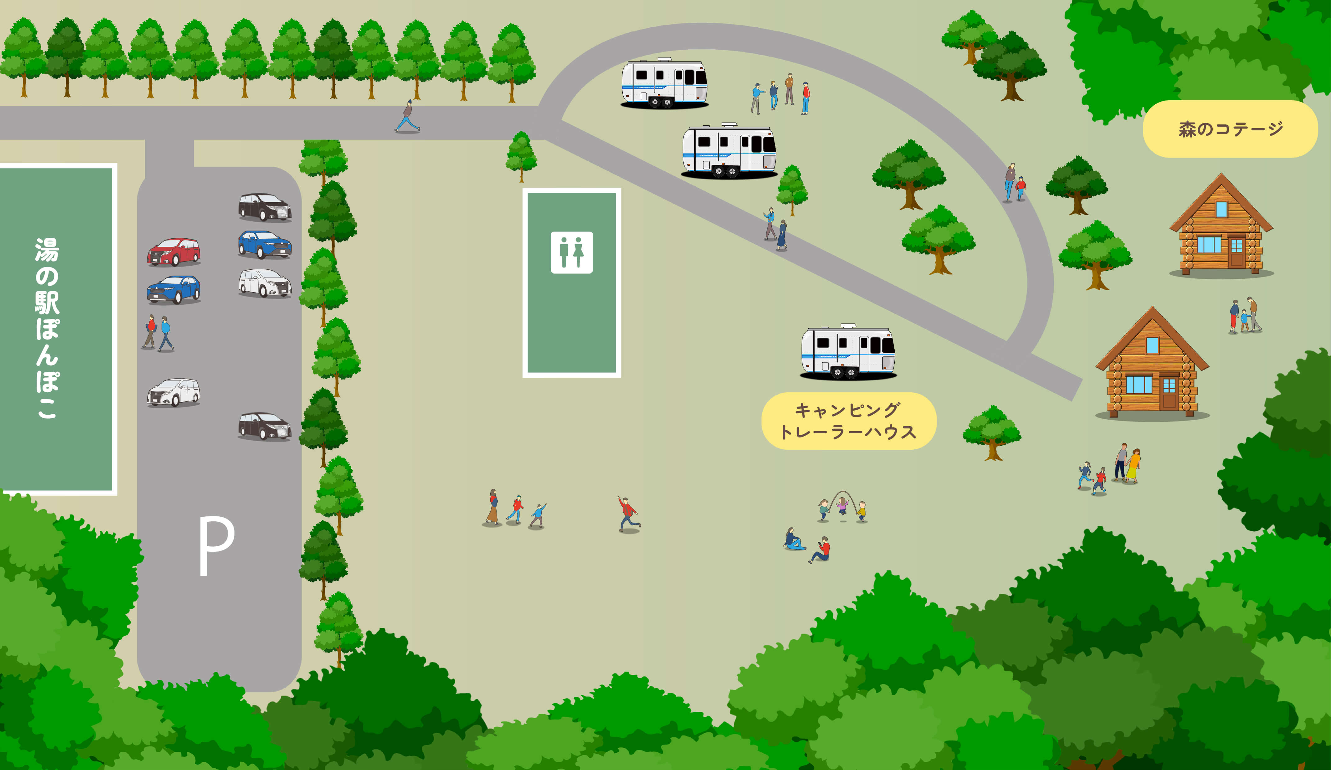 宿泊の方は、湯の駅ぽんぽこで温泉に入り放題。1日中楽しんだ体を温泉で癒すことができます。