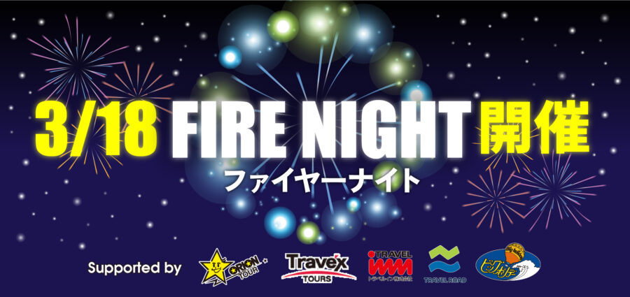 EVENT 3月18日ファイヤーナイト開催 2023.03.12 今年もファイヤーナイト開催します!ナイター営業終了後に花火打ち上げ! 日時:3月18日(土)21:00~ 場所:Valley第1ゲレンデ THE BASE前