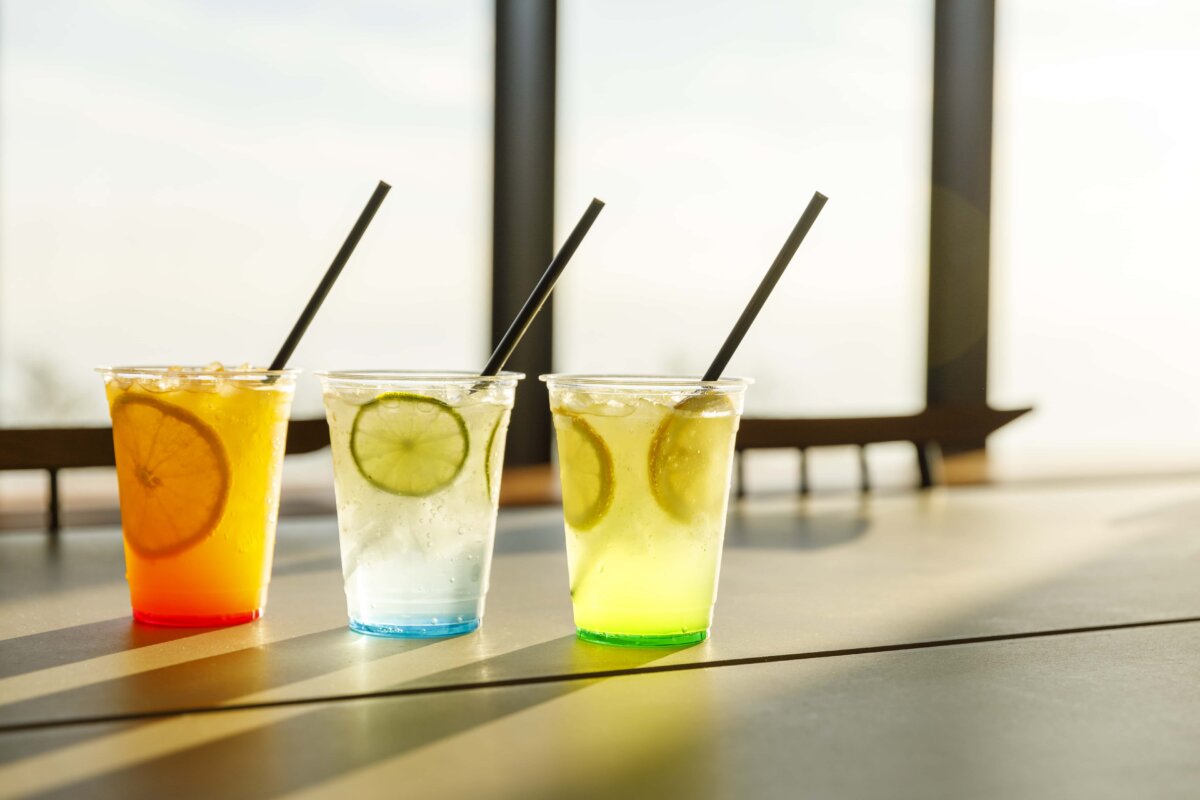 スカイソーダ 左からサンセットオレンジ、ブルースカイライム、サンライズレモン