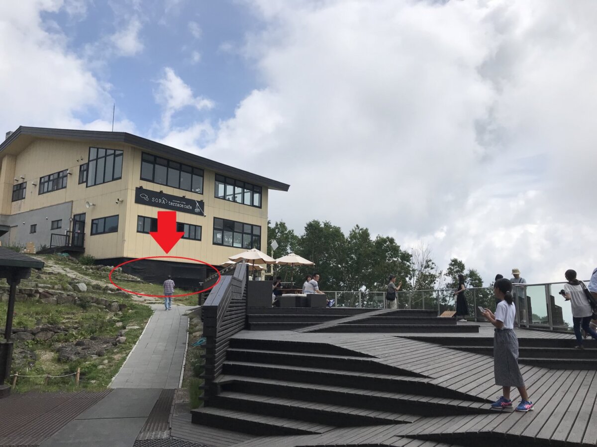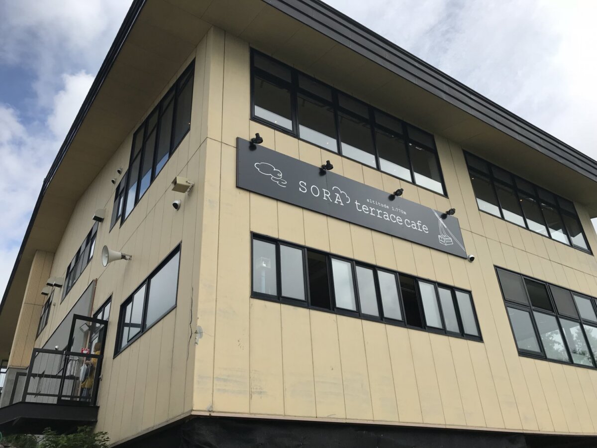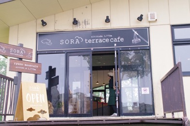 テラスより少し高い位置にある2階建ての建物がSORA terrace cafe
