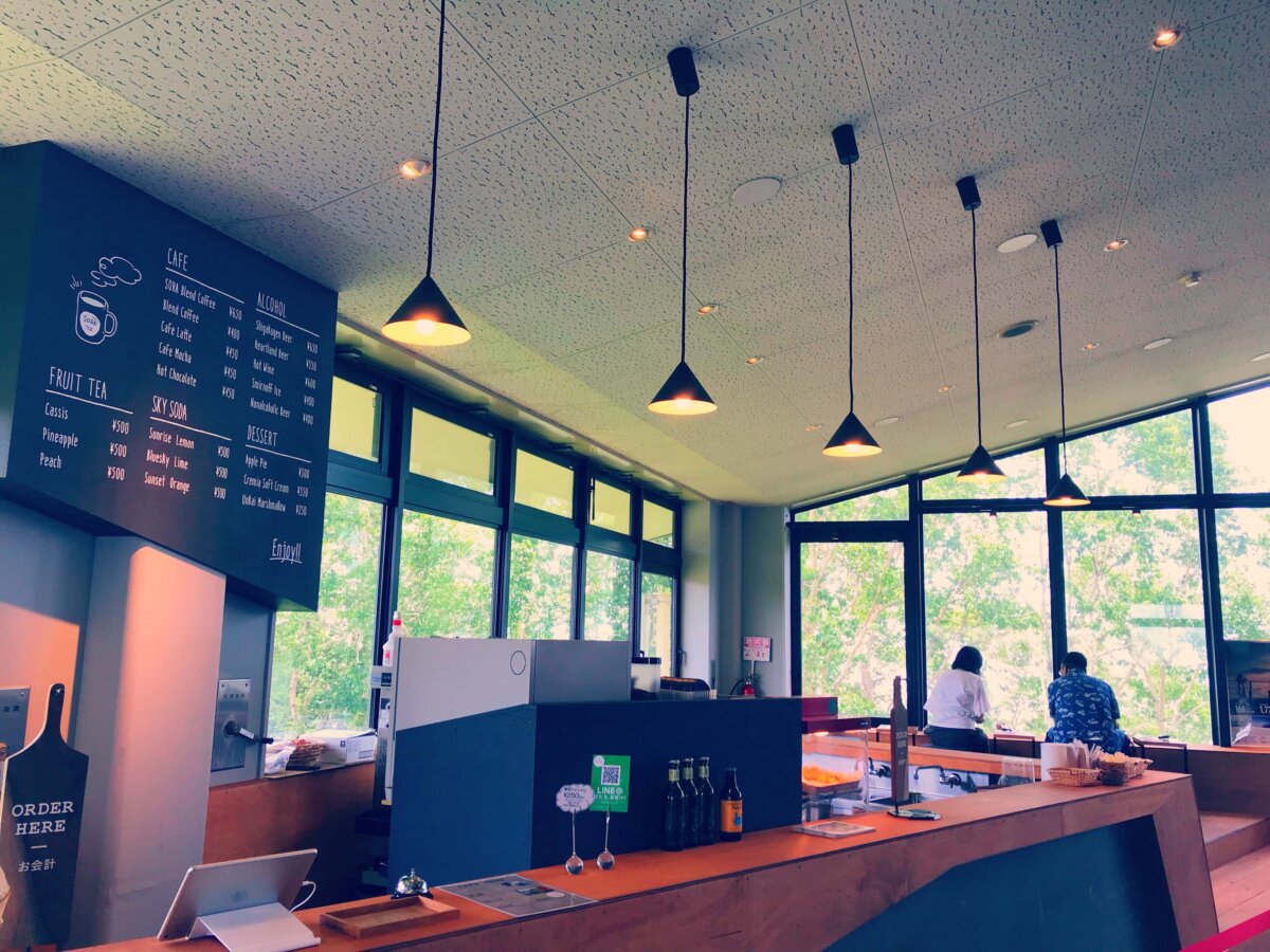 2階の入口を入ってすぐ左手にあるカフェバーでは、 ≪SORA珈琲≫ や ≪スカイソーダ≫ などの飲み物、アップルパイやクレミアソフトクリームなどが注文できます。