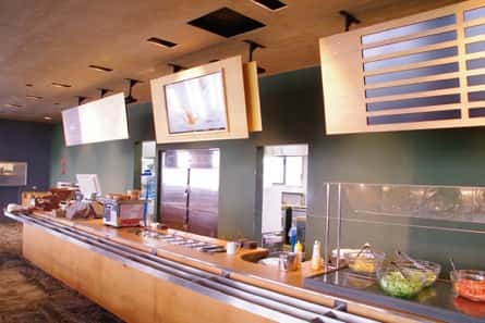 2階の入口を入って右側に進むと、食事を注文するレーンがあります。